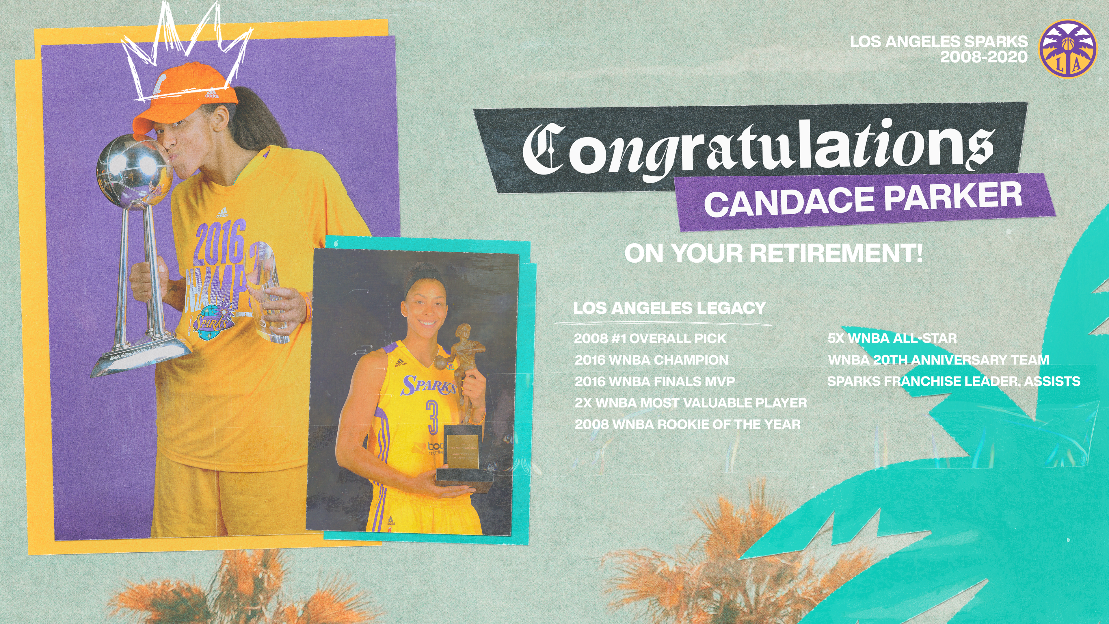 "For 13 seasons, we had a front-row seat to excellence personified. Candace Parker’s records and accolades speak for themselves, but her true impact lies in how she redefined what was possible in this sport,” said Sparks Governor and Managing Partner Eric Holoman. “She inspired generations with her skill, leadership, and championship mentality, forging a legacy that goes beyond the trophies she won and the banners she raised—she changed the game and elevated women’s basketball. Candace defined an era for the Los Angeles Sparks, and her No. 3 will rightfully take its place among the legends of basketball and icons of Los Angeles. We are honored to retire her jersey and celebrate everything she has meant to this franchise, this city, and the game itself."