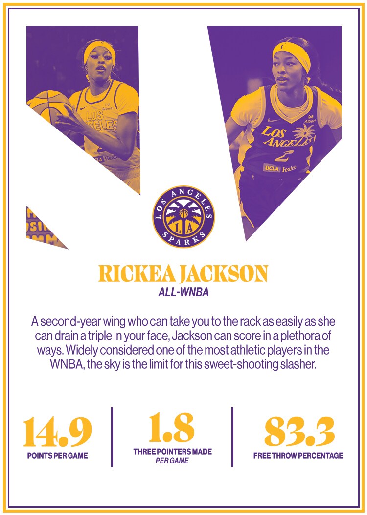 In her second season, Rickea Jackson became the first in her draft class to reach 100 three-pointers made. The athletic wing has also established herself as a three-level scorer and one of the clutchest players in the league. The Sparks are 9-1 when she scores at least 20 in a game this season.