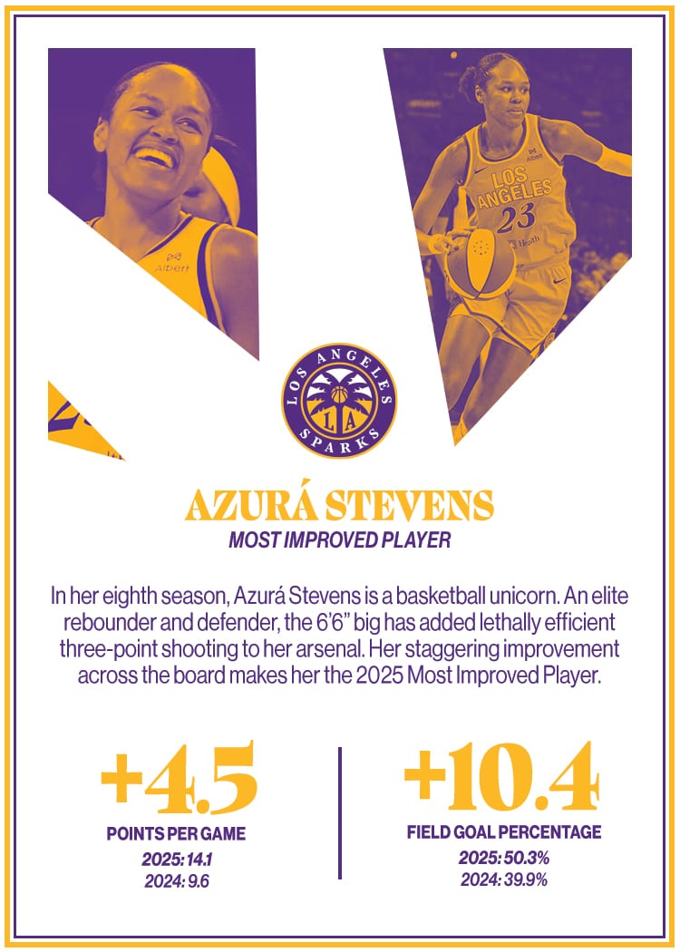 Azurá Stevens has delivered a breakout year, embodying the definition of Most Improved Player with her dynamic two-way growth.